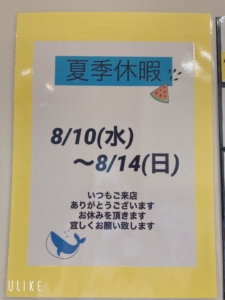 お知らせ🍉たまご店の夏季休暇